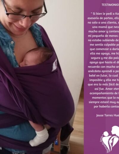 Desde 2014, mi trabajo más cotidiano ha sido entrar a las casas, consultas y vidas de las familias para que el porteo se sienta posible, seguro y cómodo. Cada asesoría es una conversación, un ajuste y un abrazo que se vuelve recuerdo