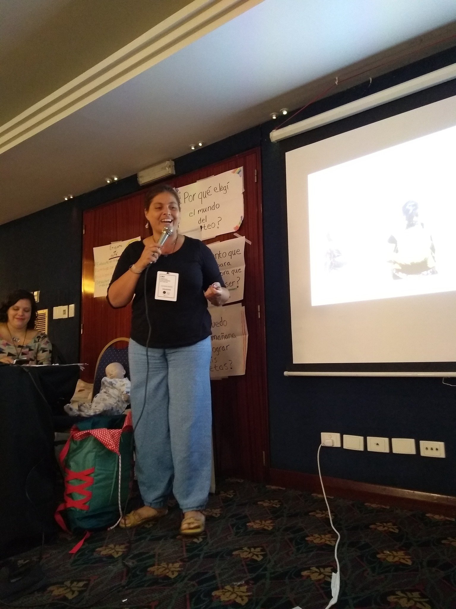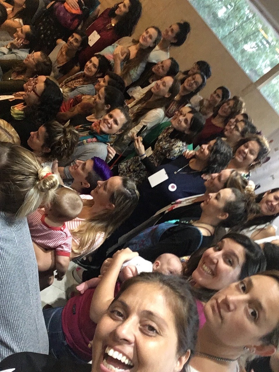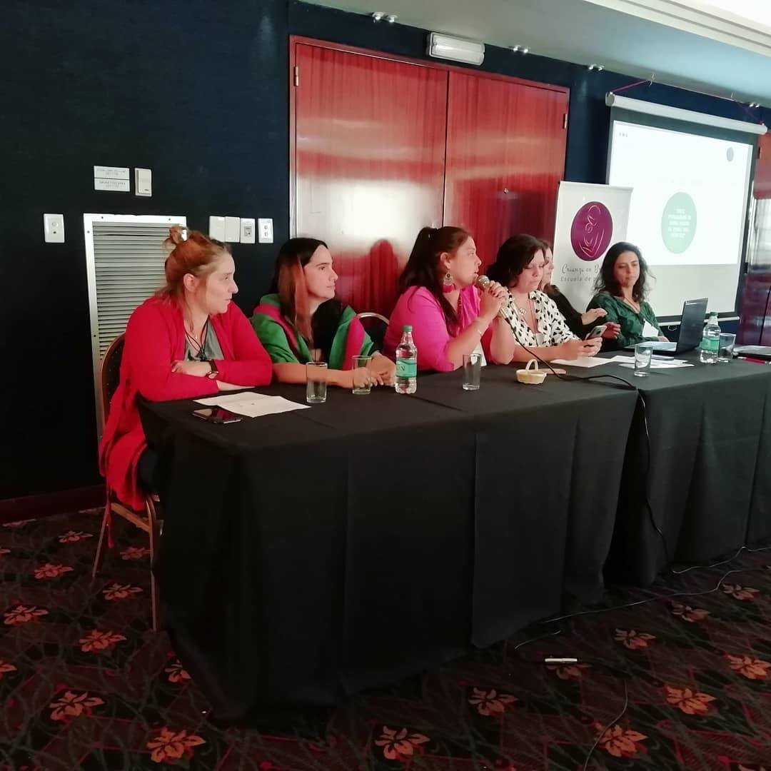 Congresos, simposios y mesas redondas en Chile, Argentina, Colombia o Brasil donde el porteo se conversa como parte de la salud perinatal, la lactancia y el desarrollo infantil. Estas imágenes muestran cuando el porteo entra a los auditorios y comienza a hablarle no solo a las familias sino a la academia y a las políticas públicas.