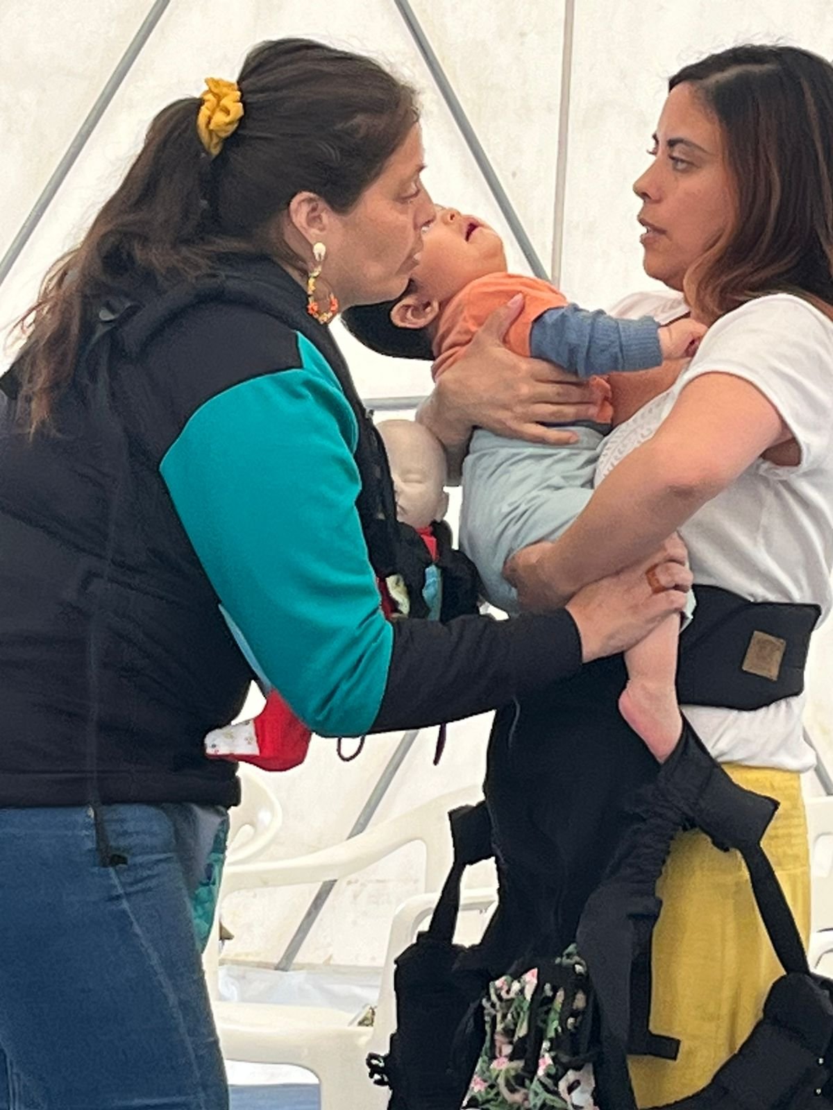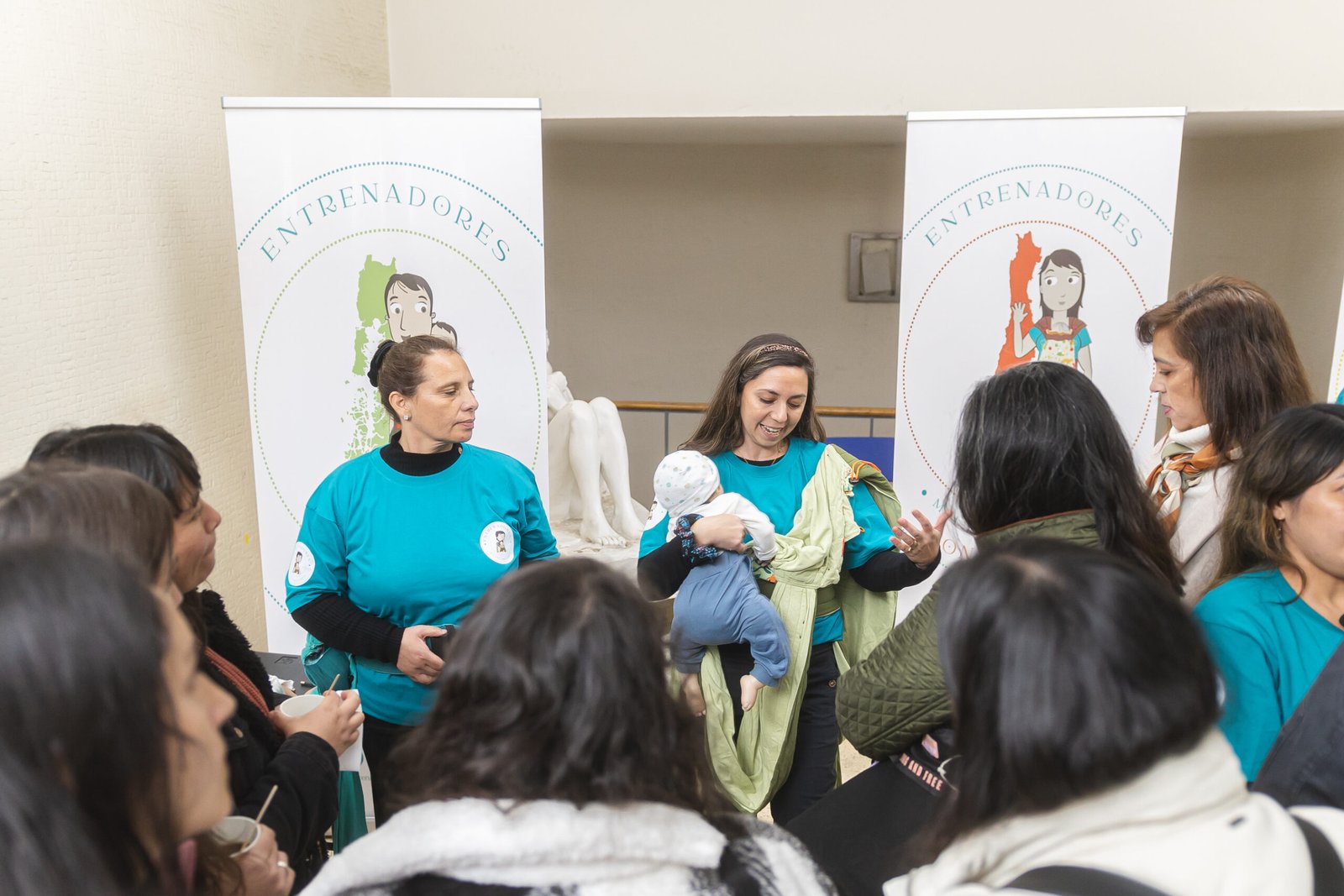 Generación tras generación, estas entrenadoras del Mei Tai llevan el porteo ergonómico a consultorios, hospitales, centros comunitarios y proyectos en toda Chile. Cada diploma y cada práctica en estas fotos es una nueva red de cuidado que se abre camino.